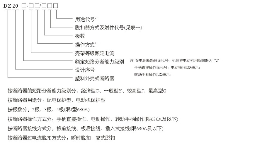 DZ2O系列塑料外殼式斷路器,適用于交流50Hz,額定電流從16A至2OOOA ,額定絕緣電壓660V ,額定工作電壓380V(400V)及以下的電路中作不頻繁的轉(zhuǎn)換和電動(dòng)機(jī)不頻繁的起動(dòng)之用。斷路器具有過(guò)載、短路和欠電壓保護(hù)裝置,能保護(hù)線路和電源設(shè)備不受損壞。